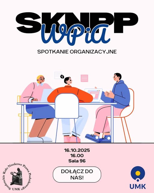 Serdecznie zapraszamy wszystkich studentów zainteresowanych prawem podatkowym na spotkanie organizacyjne, które odbędzie się 16 października (czwartek) o godz. 16:00 w sali 96 na Wydziale Prawa i Administracji UMK.